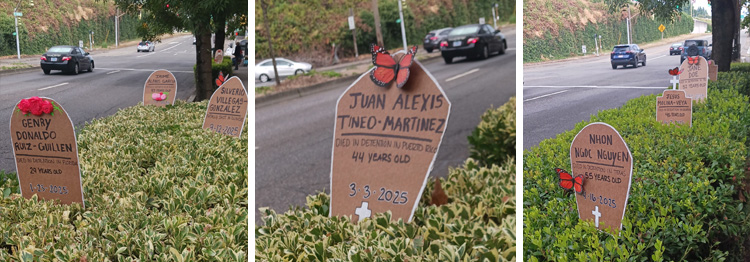 So let’s back up a little to Saturday afternoon, September 27th … one of those beautiful autumn days … perfect weather for a gathering on the banks of our Willamette River. “There is no insurrection, there is no threat to national security and no need for federal troops in Portland,” Oregon Gov. Tina Kotek said at the very beginning of a press conference called just hours after President Trump announced his intent to send US troops to Portland. Later, just before dark, about 100 protesters, including folks from the Portland Peace Team, a variety of religious leaders, and families carrying flowers showed up at the ICE building to march quietly as helicopters and drones flew overhead. Sunday afternoon and evening brought hundreds of more Oregonians from surrounding towns to stand in solidarity with Portlanders. Hopefully, we will continue to show up, to stand together, to sing together, and maybe even to pray together. Who knows where it will take us?